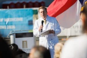 “None of this happens in isolation,” said Dr. Hershey Bell, the founding dean of the SOM. “It takes the full partnership of our University, our health system, our faculty and staff, and the extraordinary people of this community who share a belief in what’s possible when vision meets purpose.”